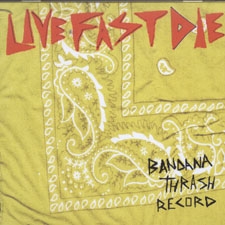 Loud G.G Allin rock and roll played through a cheap 1973 handheld transistor radio. Take some snot from Stivs nose and some diarrhea from G.G ass, up the dose with the Mentors and a little Tesco Vee sarcasm; and you have procreated some primitive, primal unformulated, pure unadulterated scum fuck rawk and roll. Like two exploding mammary glands drenching, bathing in the sound of flatulence. Live Fast Die probably will.